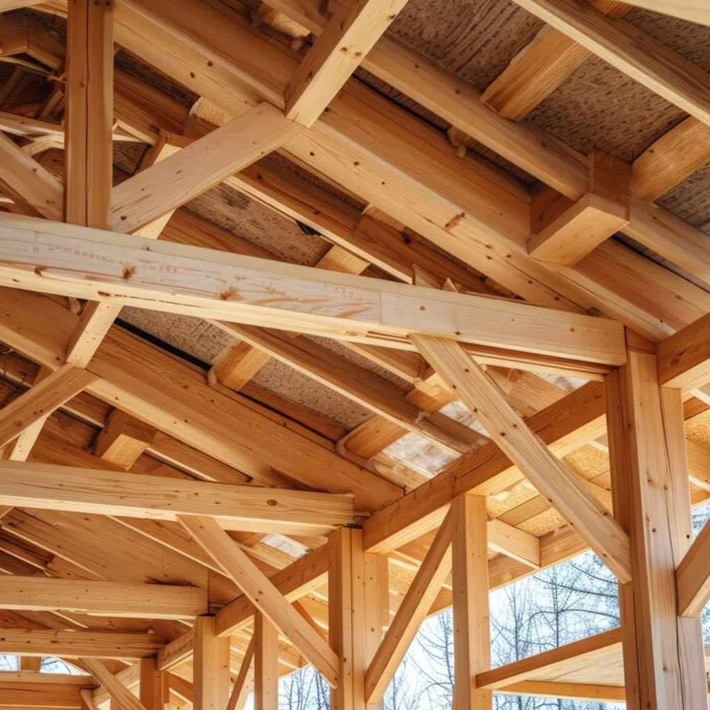 Timber framing uses large-dimension structural lumber — 6×6, 8×8, 6×10, 8×12, and larger depending on the spans and loads. Unlike stick-frame construction, where dozens of smaller members share load through a distributed system, a timber frame concentrates load in a small number of large members connected at engineered joinery points.